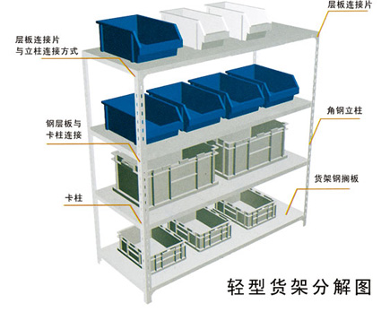 輕量型貨架是指層載小于100kg,整體承載小于1000kg的貨架。